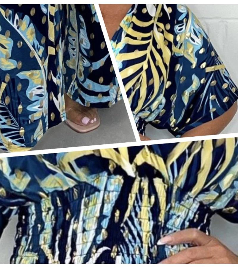 Con il suo profondo scollo a V e la vita elasticizzata, valorizza la silhouette offrendo totale libertà di movimento.
