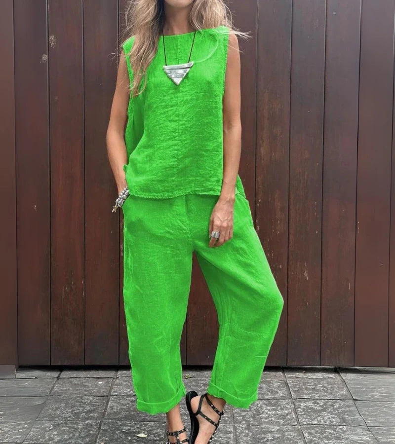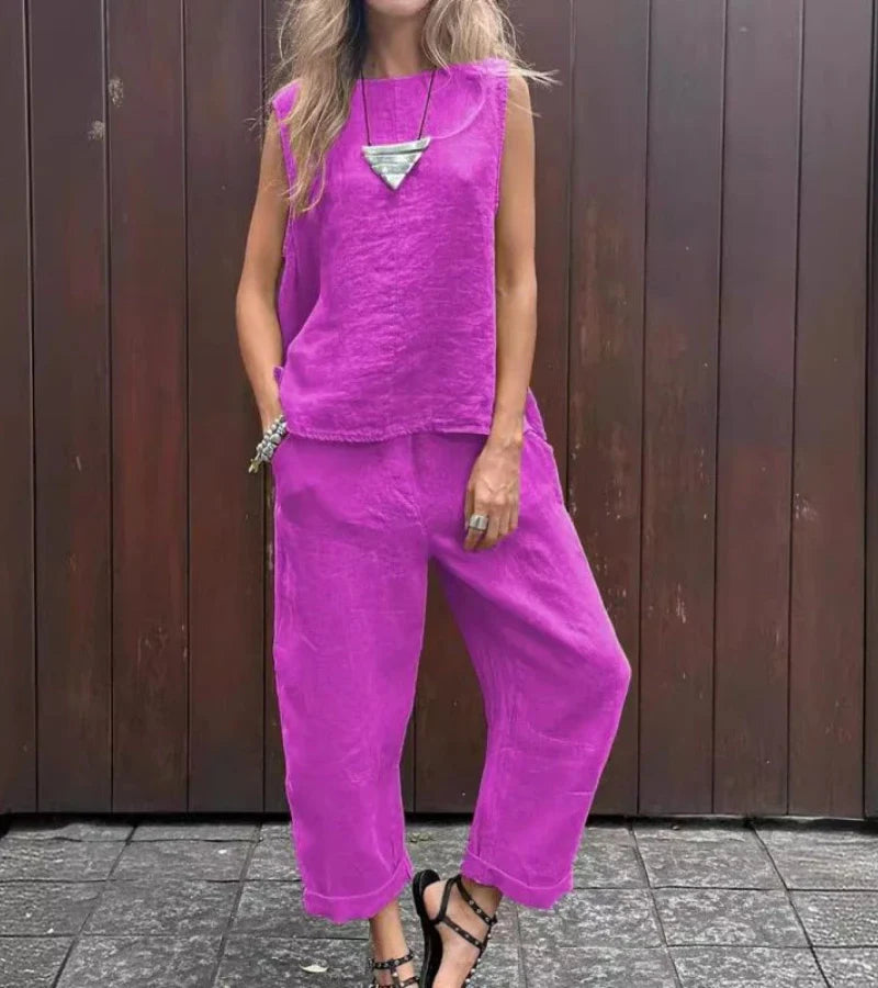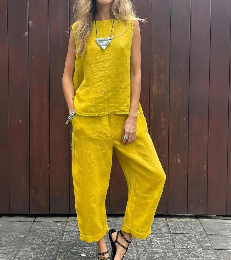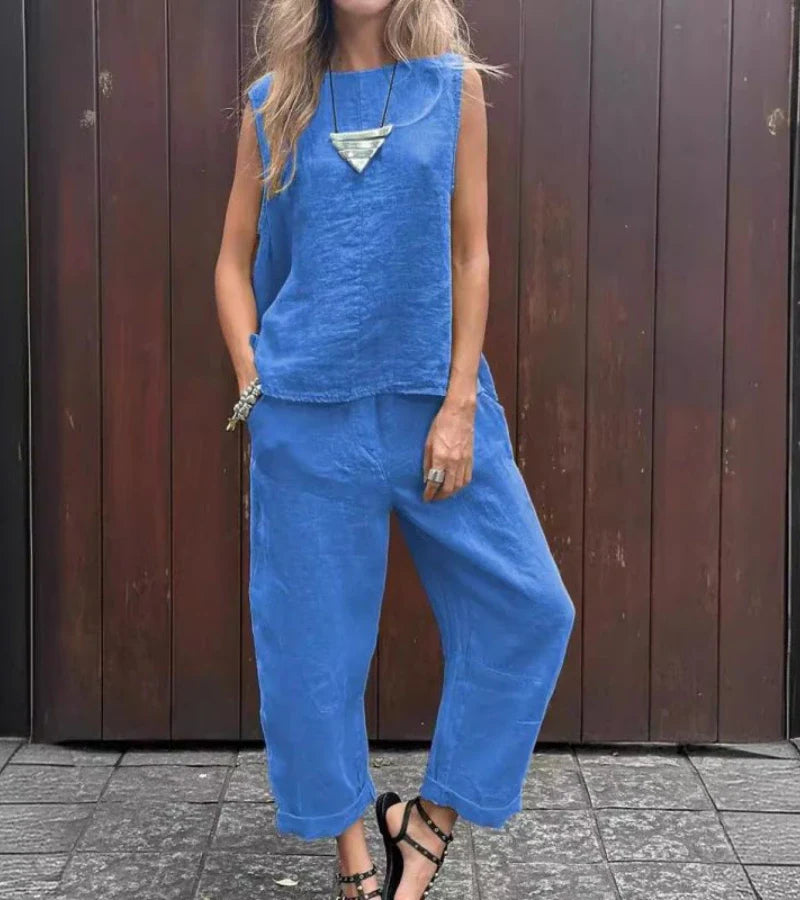 Scopri il completo estivo perfetto per chi cerca stile e comfort in ogni momento della giornata. questo set a due pezzi ti regala freschezza, eleganza e versatilità. Perfetto per le giornate calde, per il lavoro o il tempo libero, è un must-have per la tua valigia estiva.