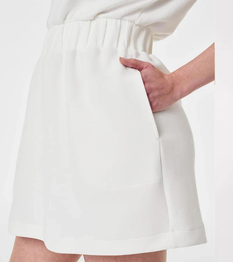 • Cintura elastica invisibile: sottolinea il punto vita e allunga visivamente le gambe.