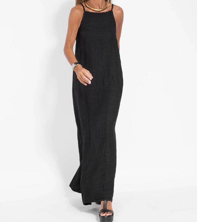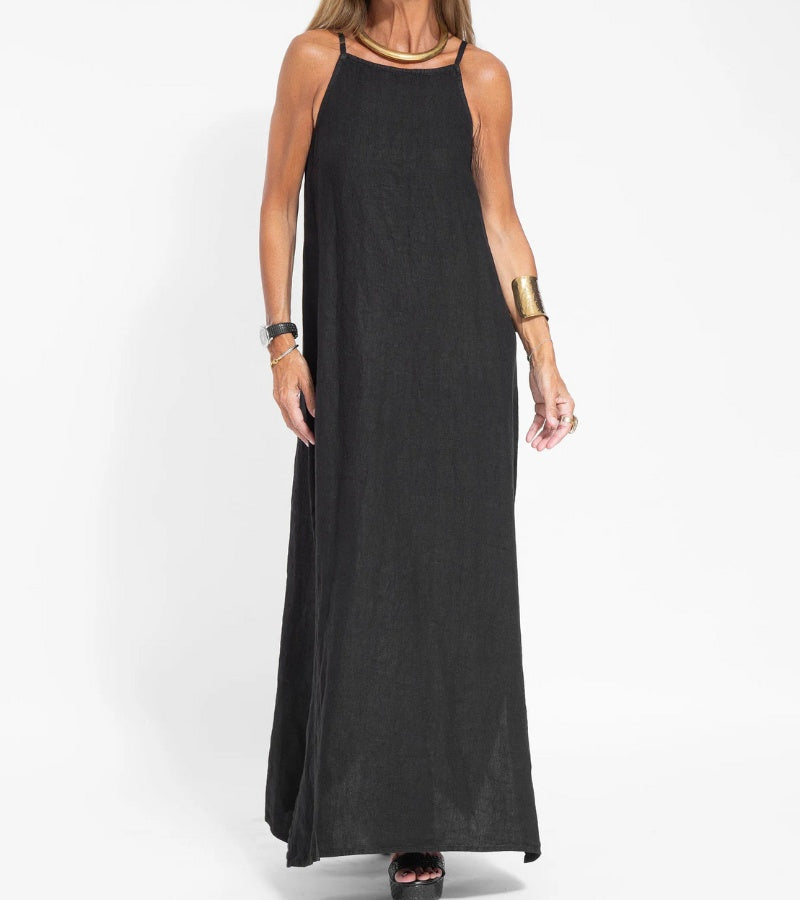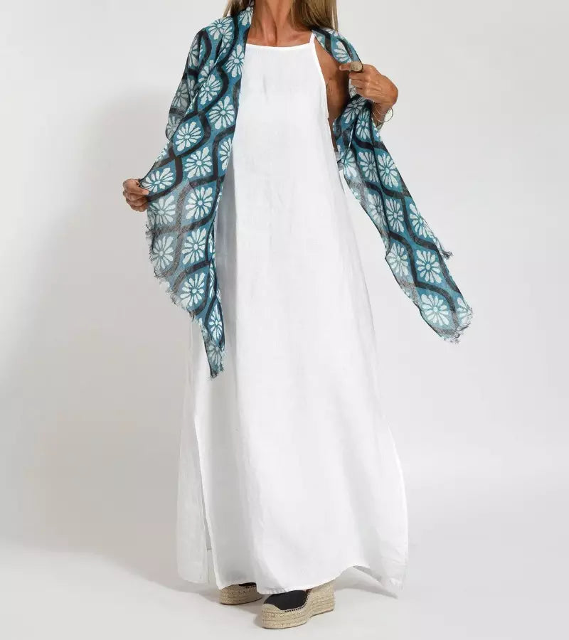Scopri la raffinatezza naturale di questo abito lungo in cotone e lino, perfetto per le giornate calde. Il taglio ampio e fluido garantisce comfort e libertà di movimento, mentre i dettagli eleganti aggiungono un tocco chic. Facile da abbinare, è il capo ideale per ogni occasione estiva. Un must-have del guardaroba di stagione.