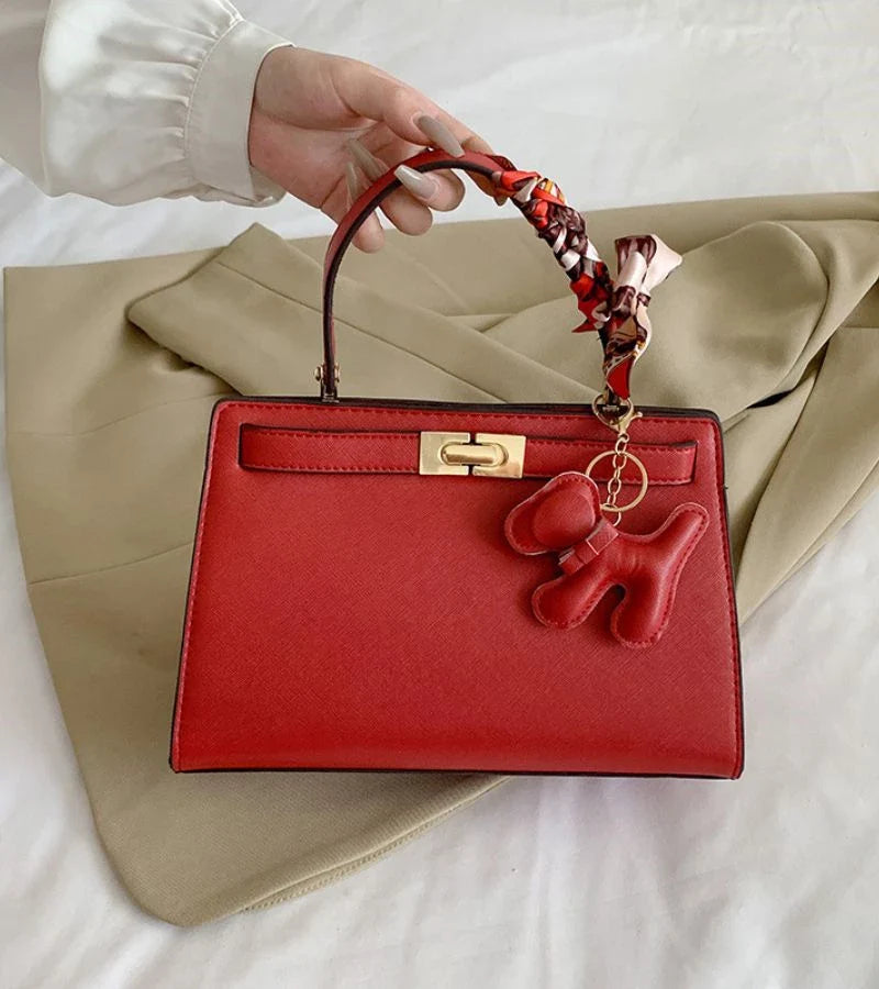 DETTAGLI RAFFINATI – La sua maniglia decorata con una sciarpa e il portachiavi a forma di cane aggiungono un tocco di originalità.