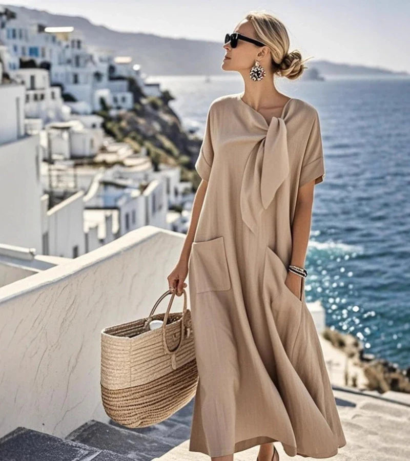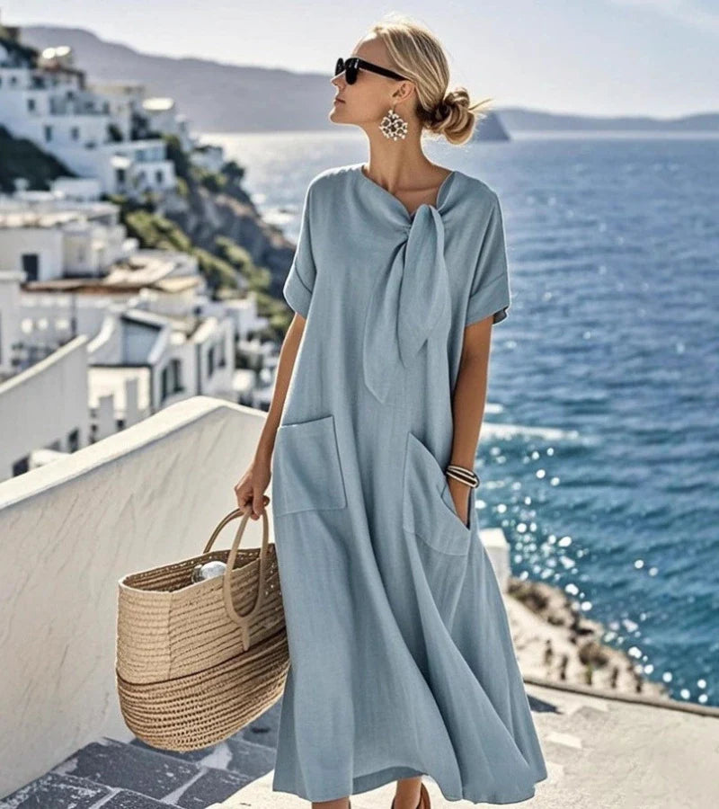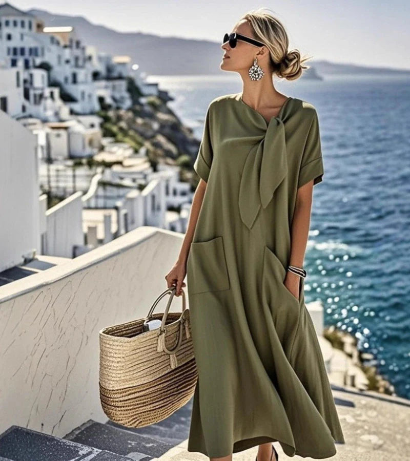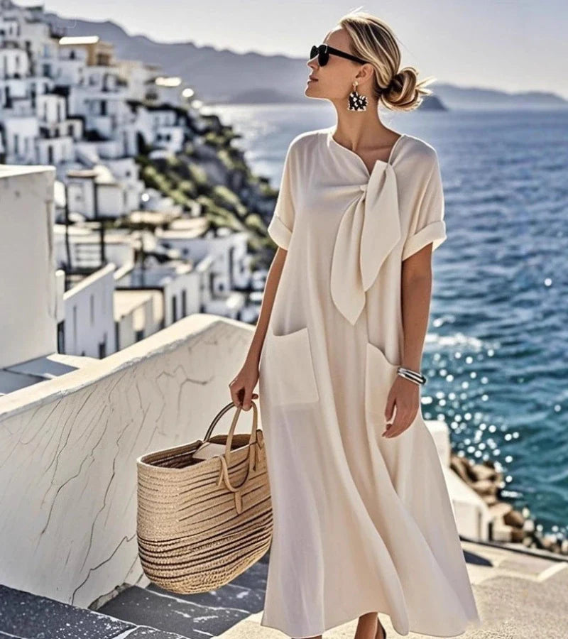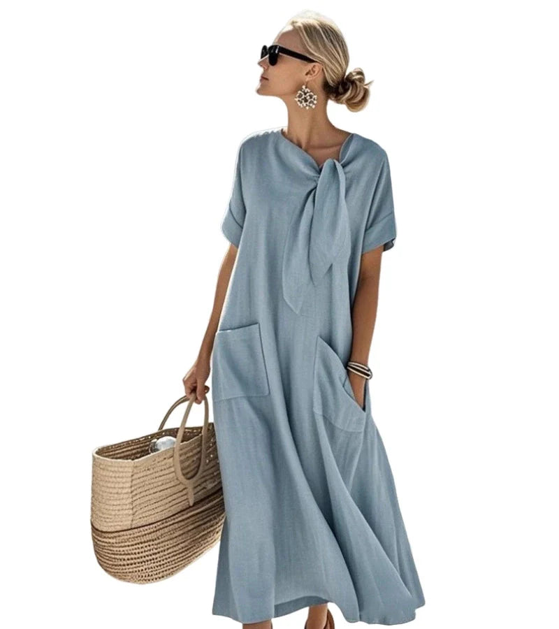 ANITA | Abito ampio con fiocco al collo e tasche pratiche