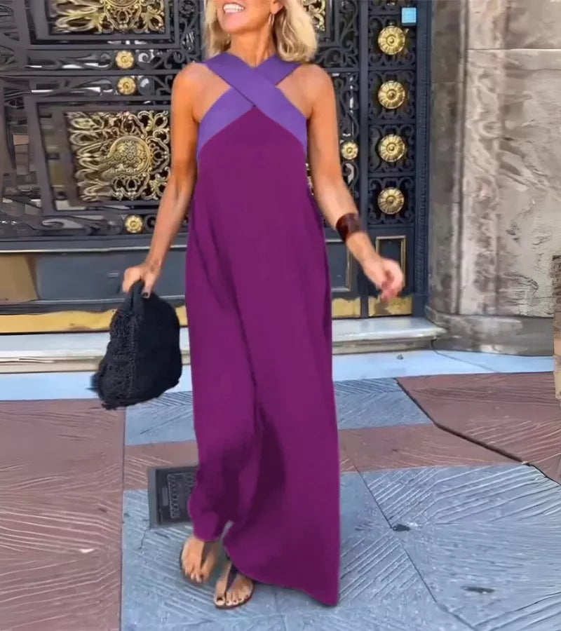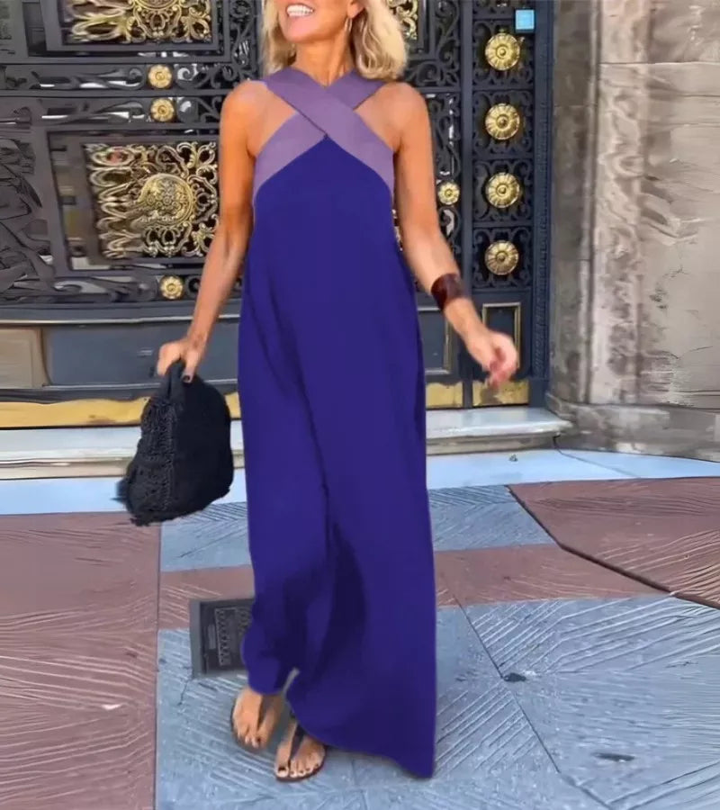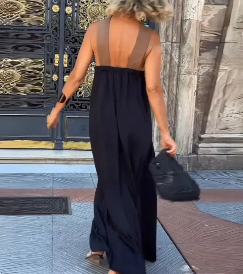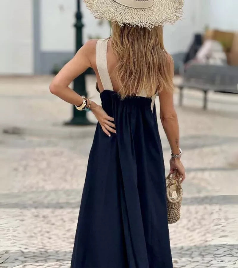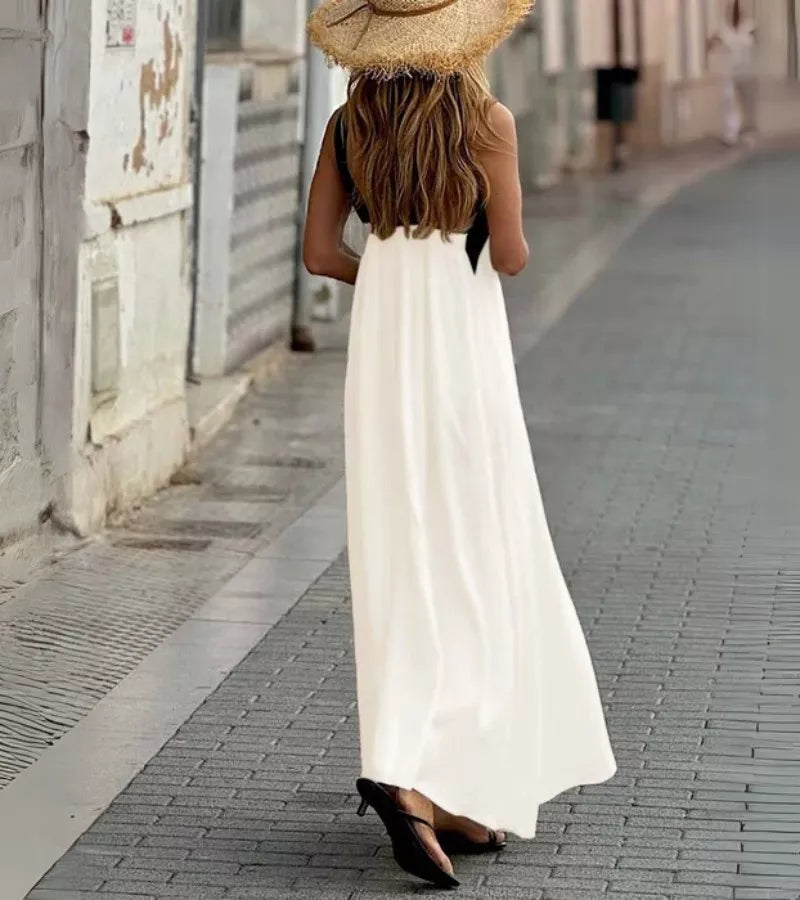 Lasciati conquistare da questo abito lungo con schiena incrociata, il perfetto alleato per un look estivo rilassato ma sofisticato. La sua linea fluida e il contrasto moderno dei colori donano un’eleganza naturale, senza rinunciare al comfort. Perfetto per una passeggiata sul lungomare, un pranzo all’aperto o una fuga in città: questo abito si adatta ad ogni occasione.