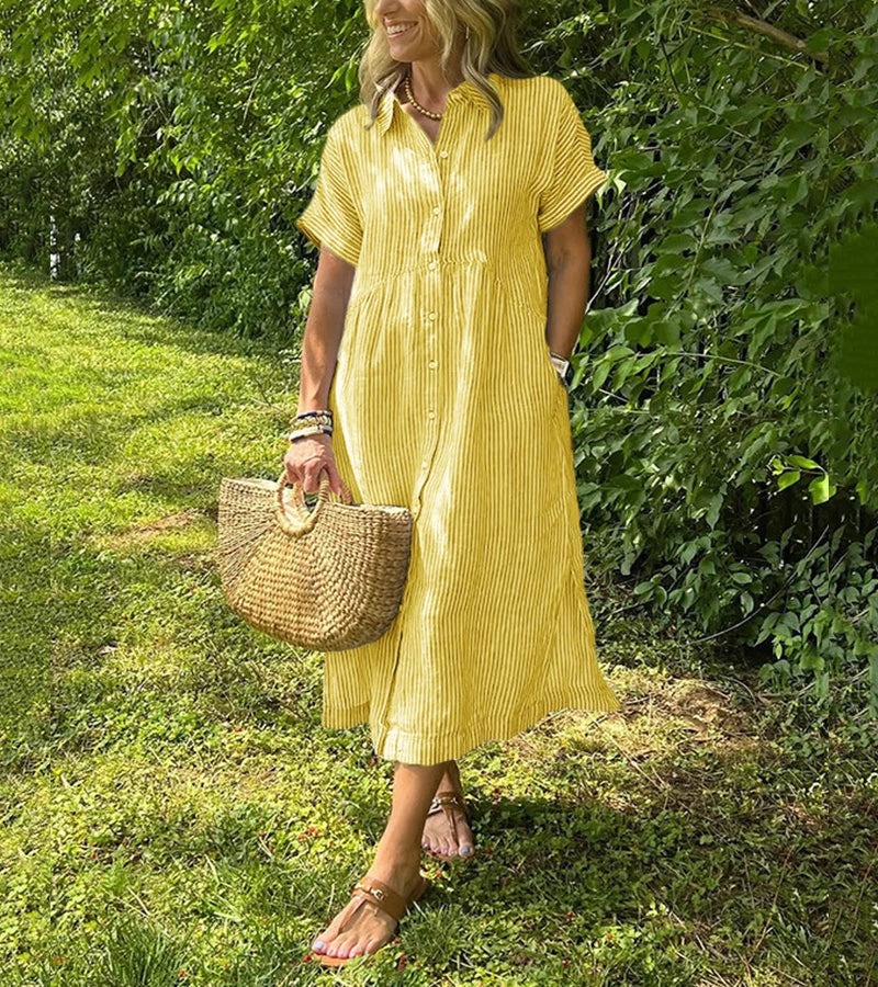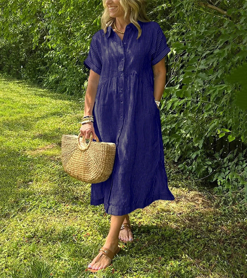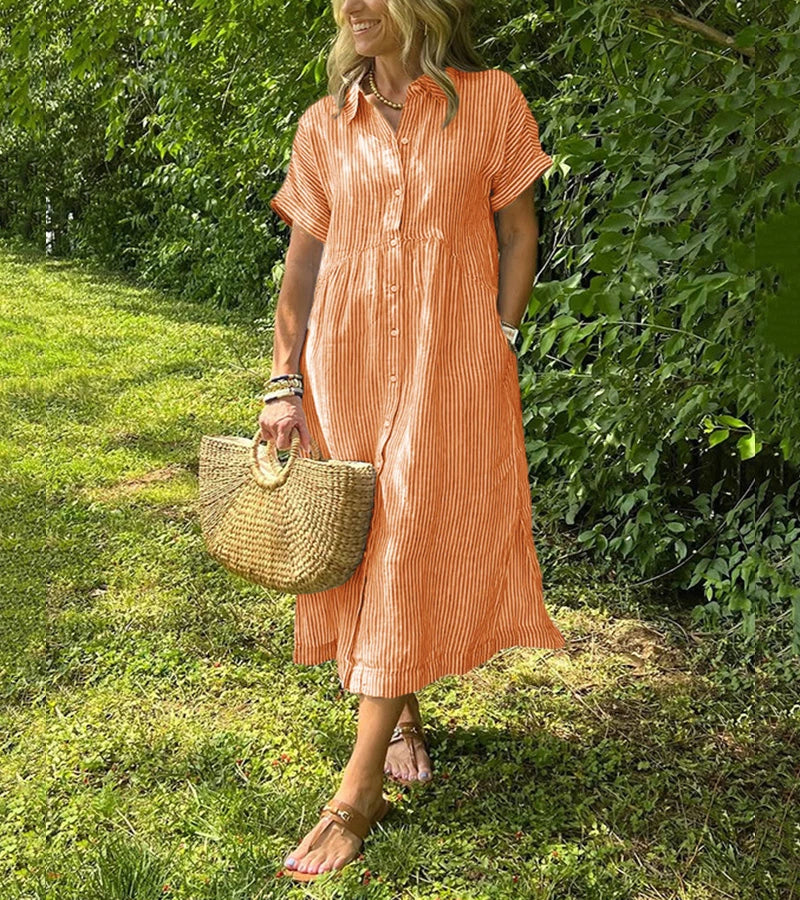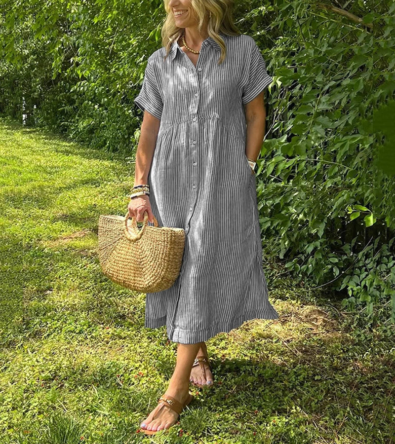 Gloria | Abito a righe con bottoni e tasche funzionali