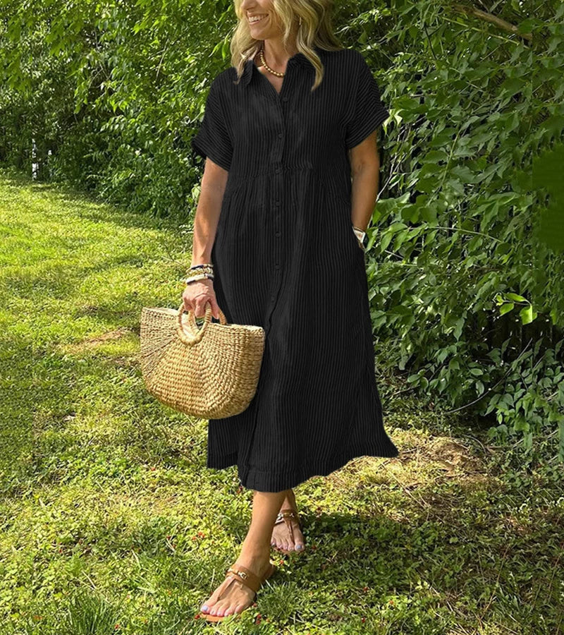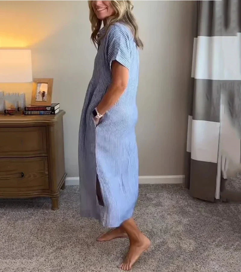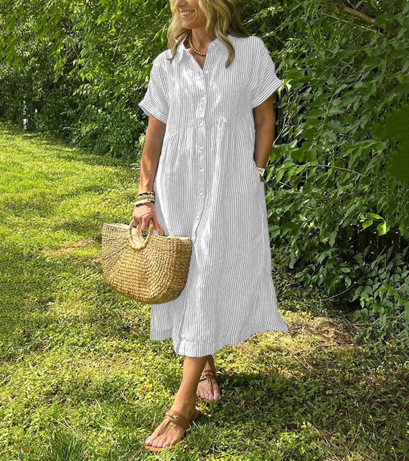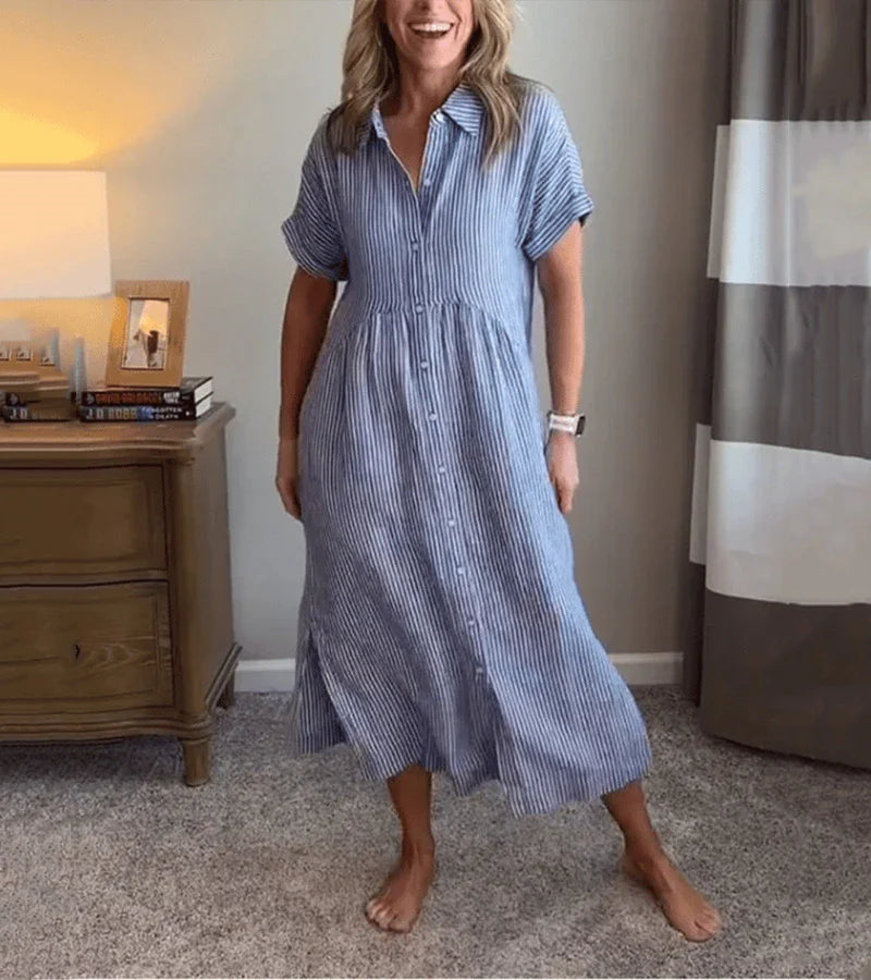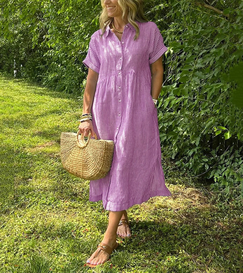 Gloria | Abito a righe con bottoni e tasche funzionali