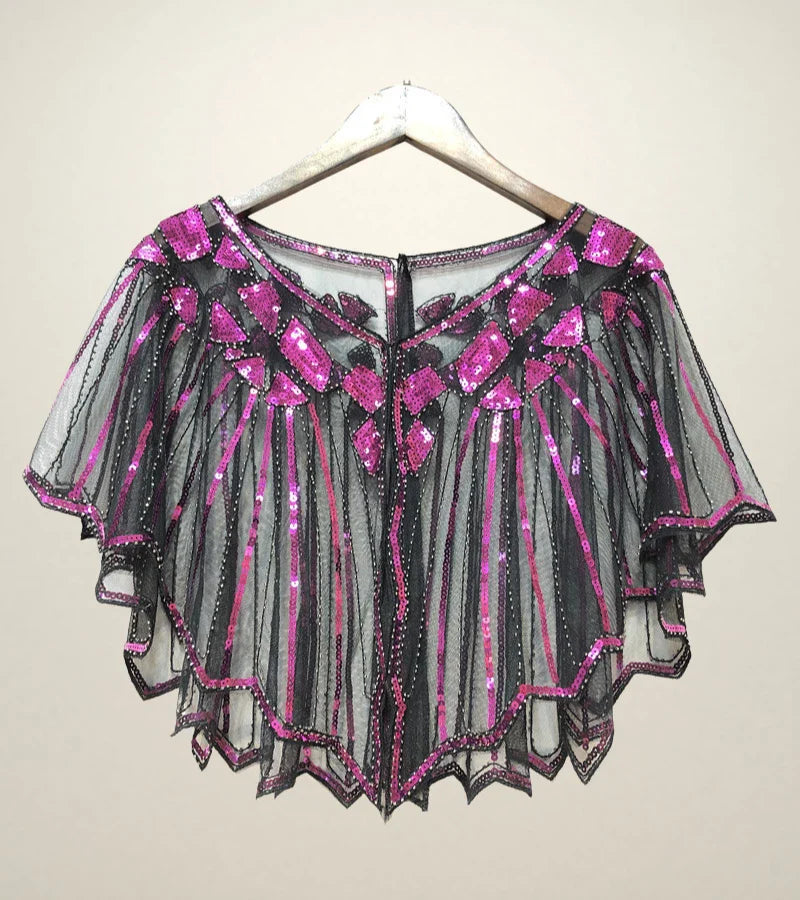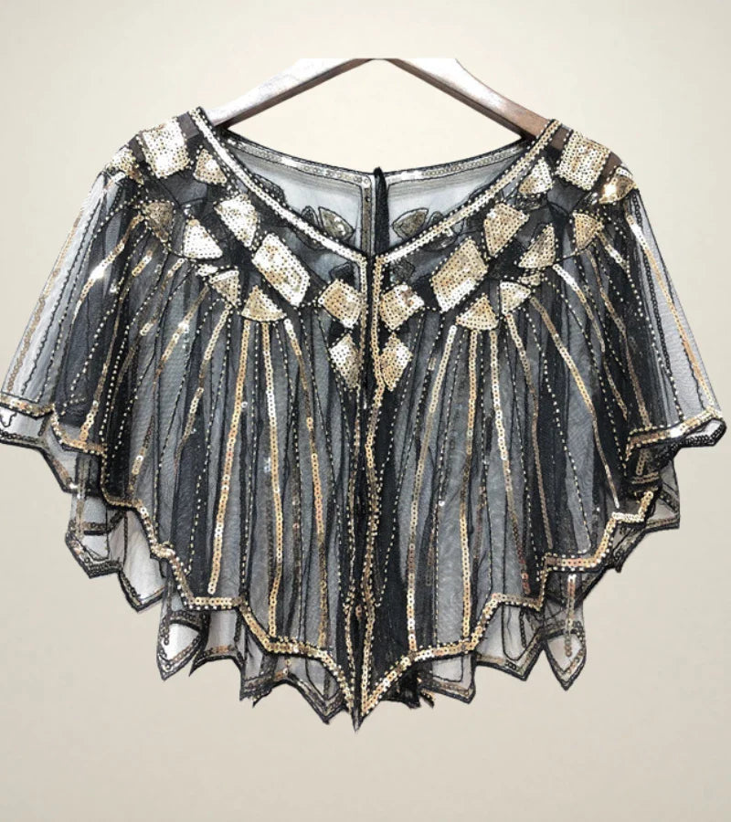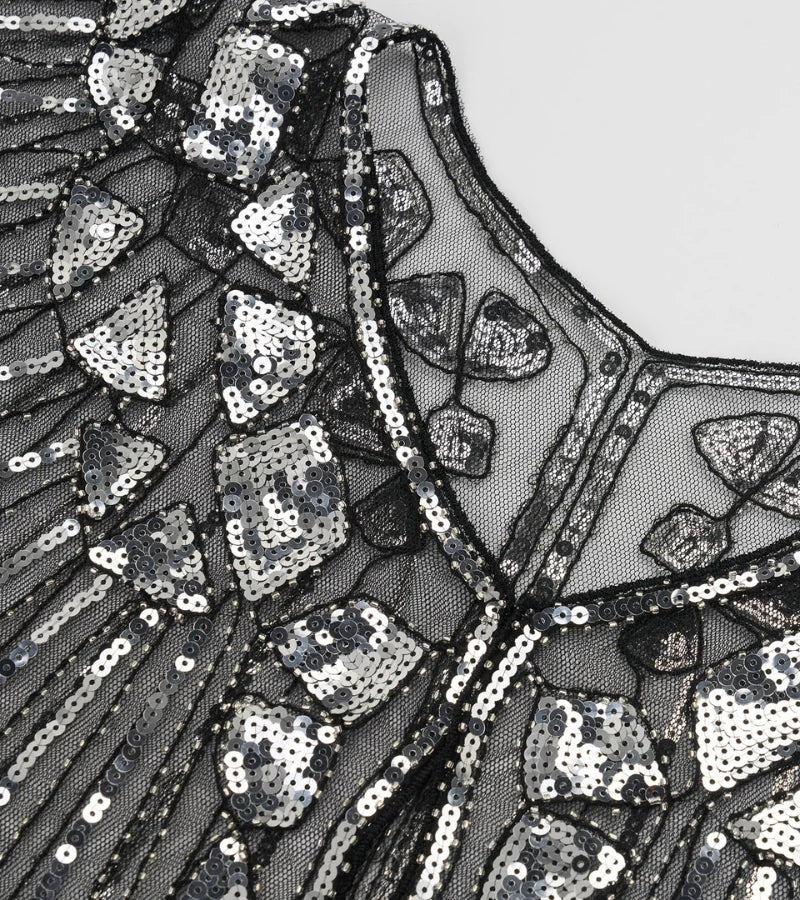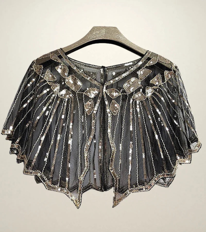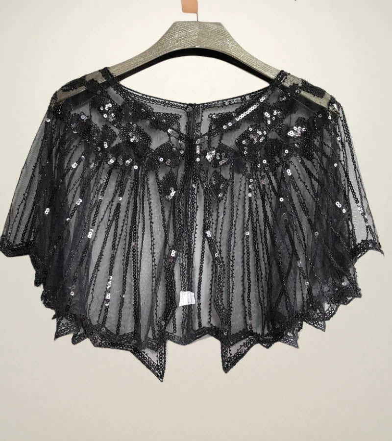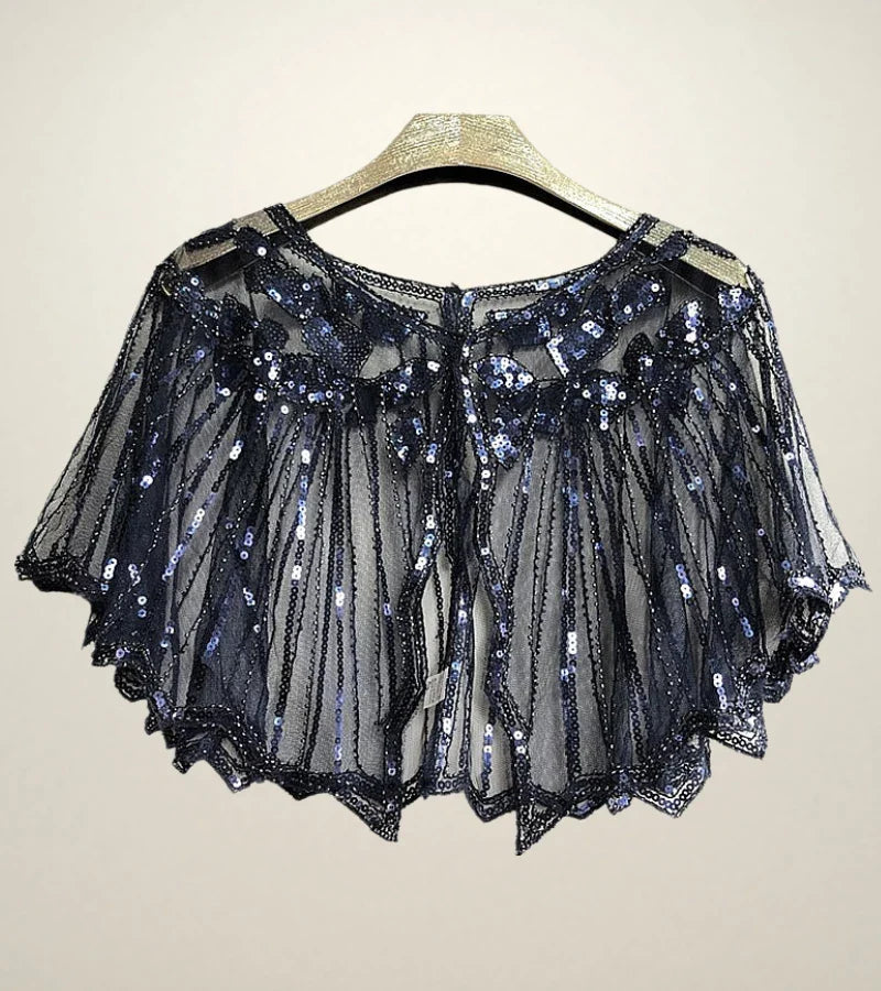 Perfetto per brillare durante un evento o una serata speciale. Leggero, fluido e ornato con paillettes cucite a mano, questo scialle aggiunge un irresistibile tocco vintage a qualsiasi silhouette.
