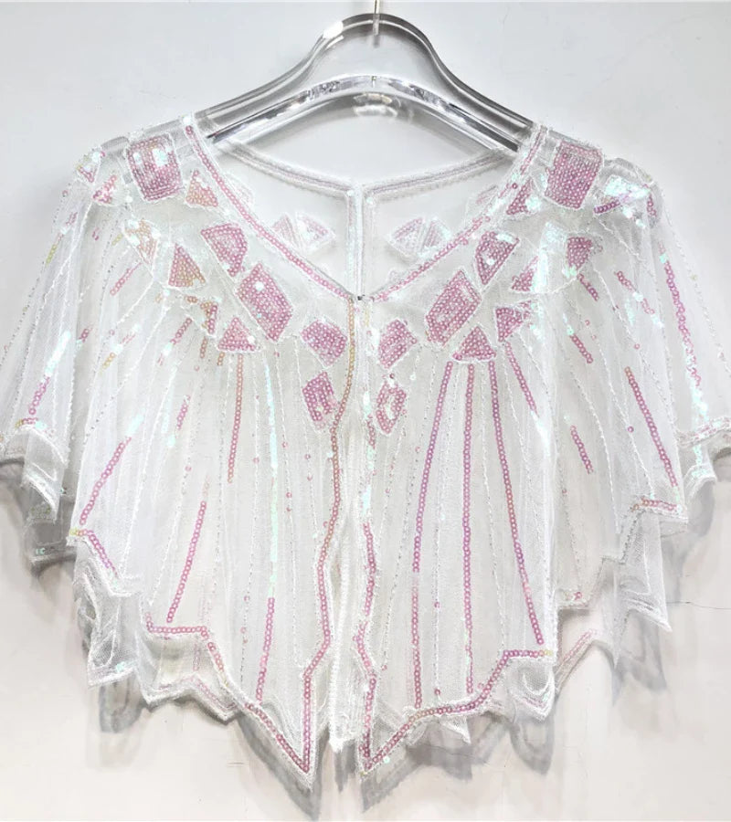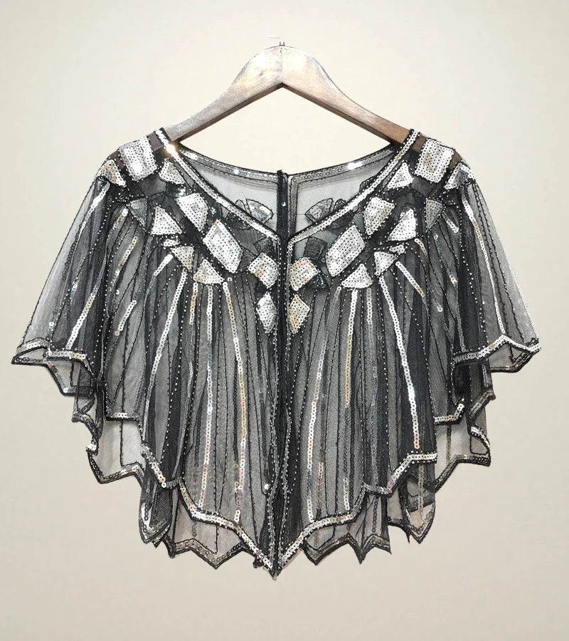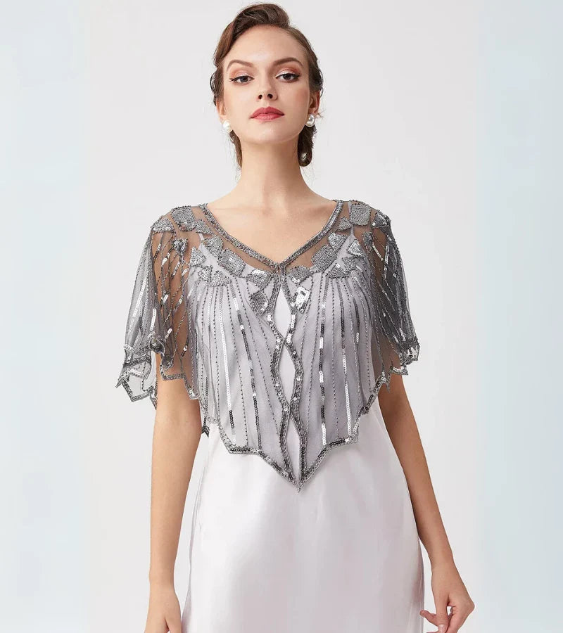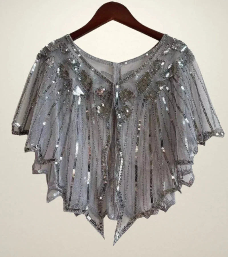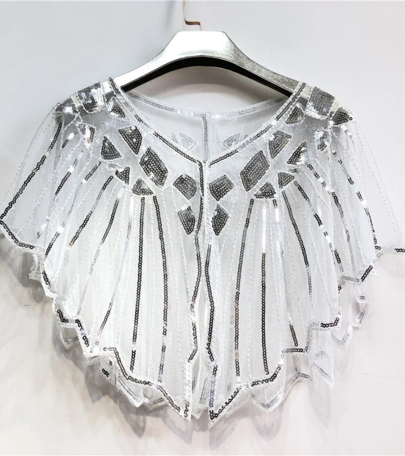 Questo scialle in chiffon ricamato con perline e paillettes trasforma all’istante il tuo look. Un pezzo unico per le donne che amano distinguersi con eleganza.