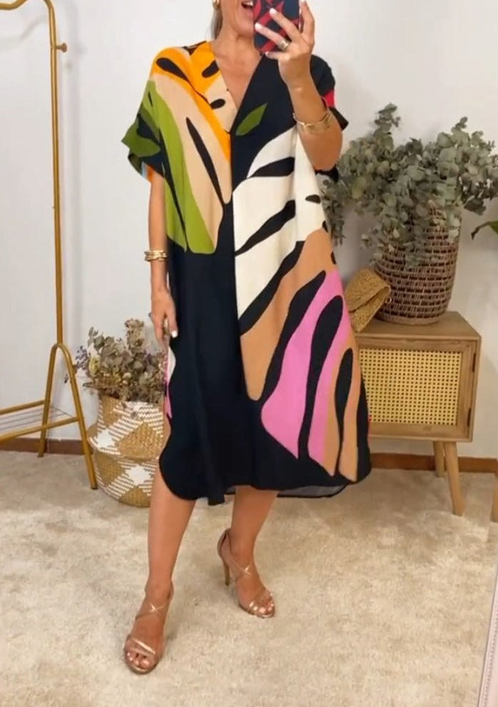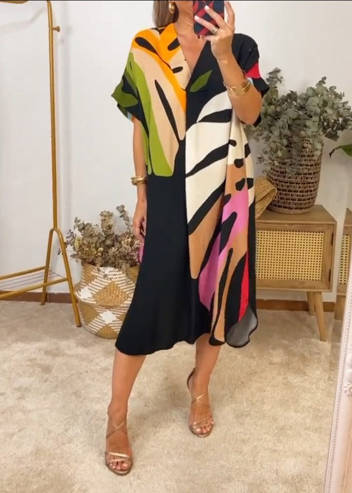 Camilla™ è il vestito floreale che celebra la bellezza dei giardini estivi. Le stampe colorate e luminose trasmettono gioia e leggerezza, perfette per giornate all’aperto o viaggi spensierati.