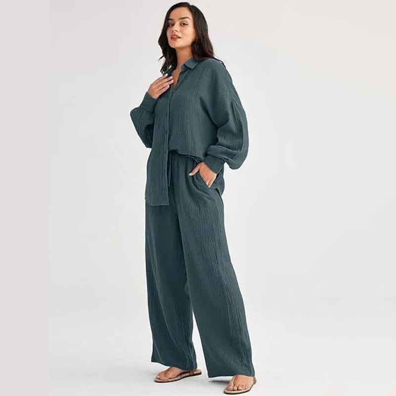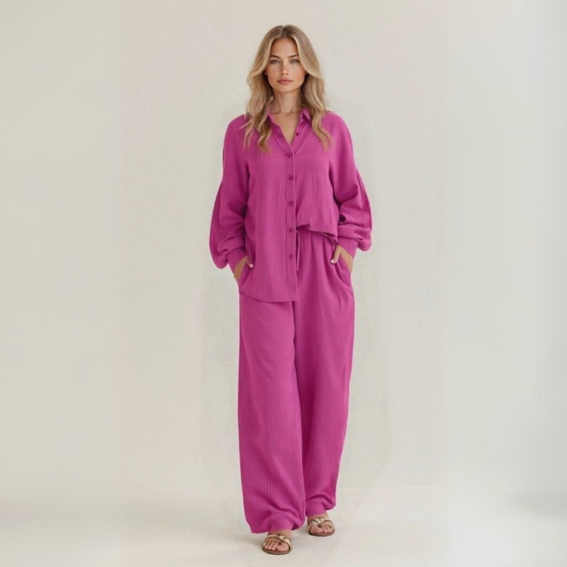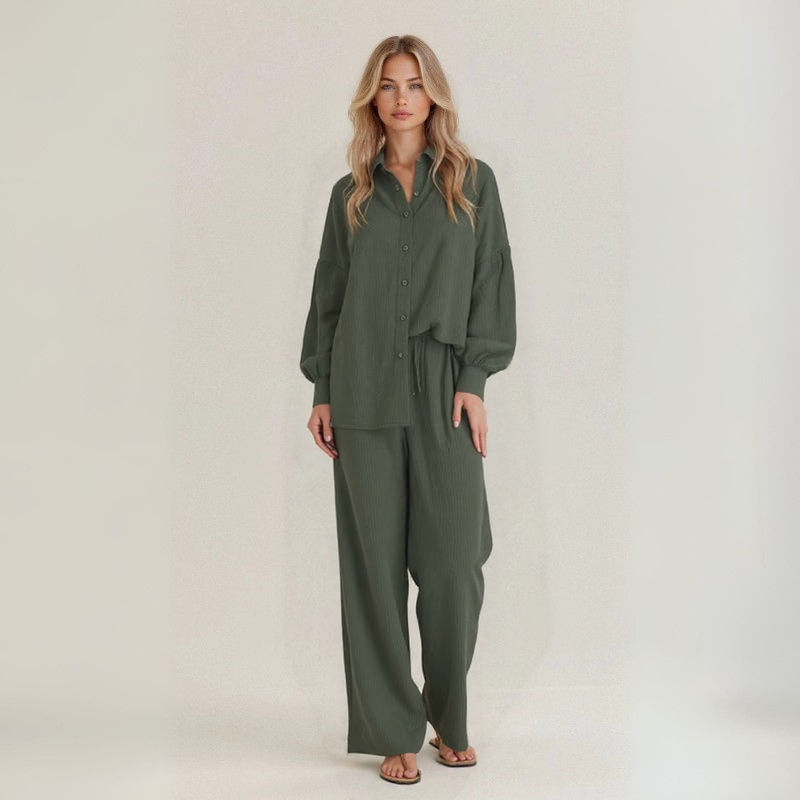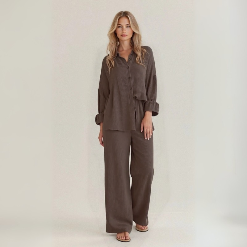 Il set Maëlle™ è il capo ideale per affrontare l’estate con stile disinvolto, realizzato in lino naturale artigianale per garantire massima traspirabilità e libertà di movimento. Perfetto per ogni silhouette e pensato per chi ama sentirsi leggera ma impeccabile.