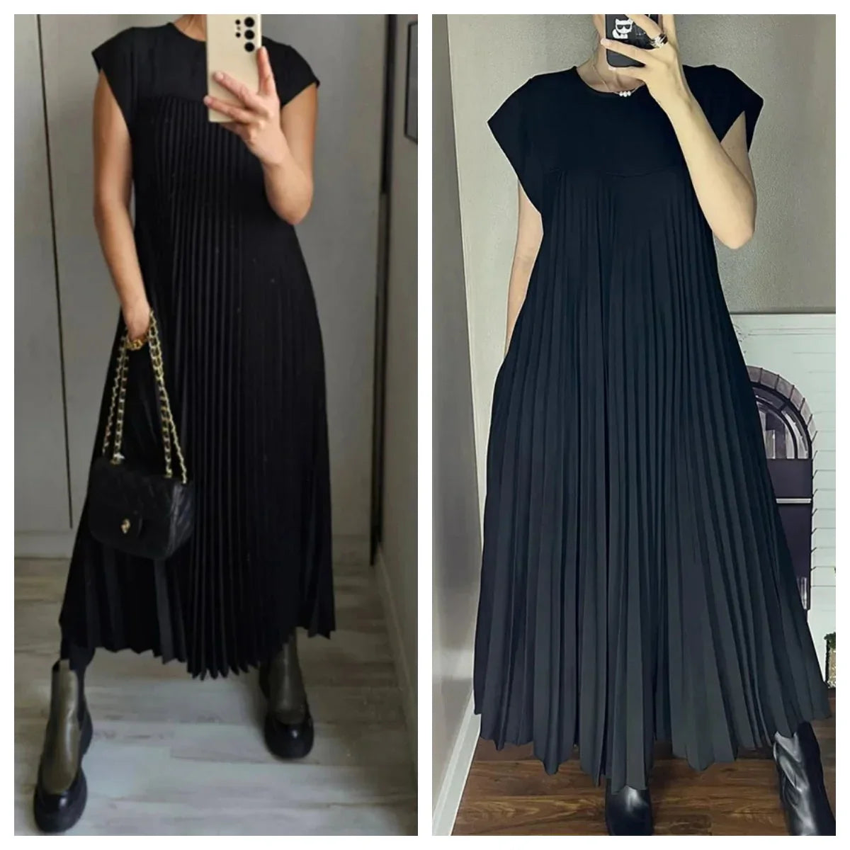 Virna | Abito lungo casual plissettato, tinta unita e senza bisogno di stiratura