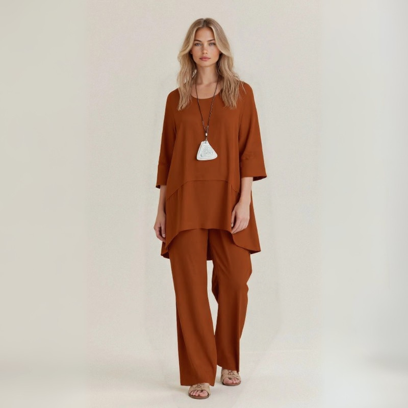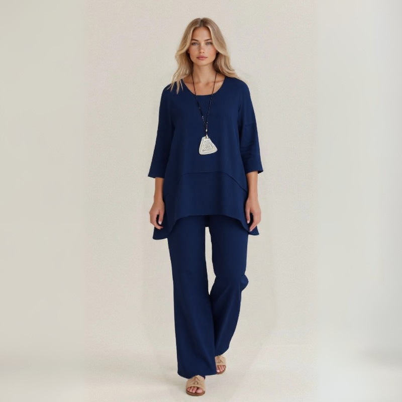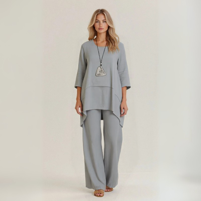 Il set Viviane™ è pensato per chi desidera un equilibrio tra eleganza rilassata e comodità autentica. Realizzato in lino artigianale 100%, accompagna ogni momento estivo con leggerezza traspirante e tagli pensati per muoversi liberamente.